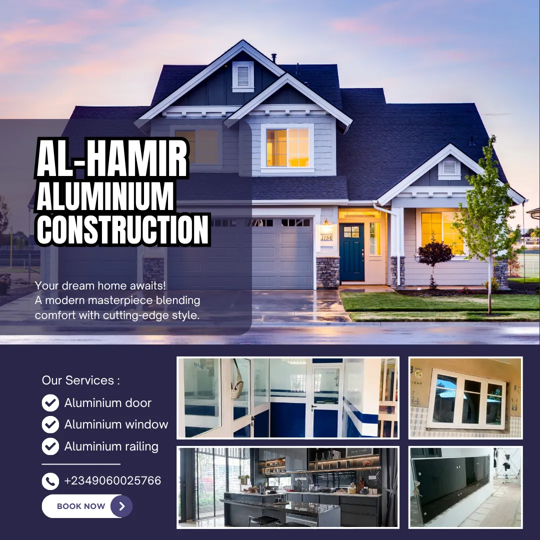 At Al-hamir Aluminium Construction, we specialize in crafting durable, elegant, and modern aluminium solutions for homes, offices, and businesses across Lagos and beyond. From doors and windows to railings and partitions — we bring your vision to life.